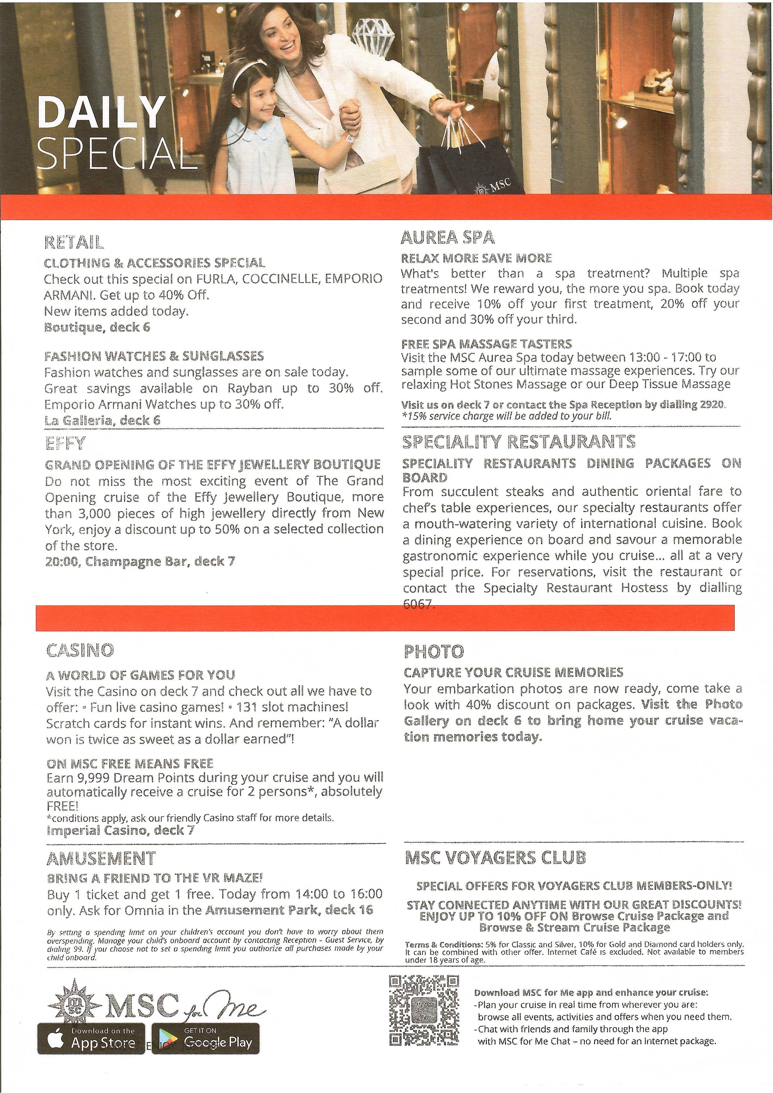 Have you ever wondered what activities you can on msc Bellissima? here are the daily planners for a recent sailing.